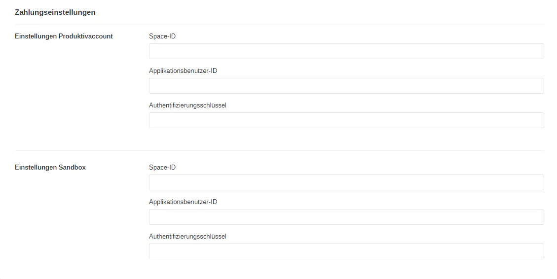 You can switch now to your Payrexx instance and navigate to Payment Providers > PostFinance Checkout > Configure. Now enter the following data in Payrexx: