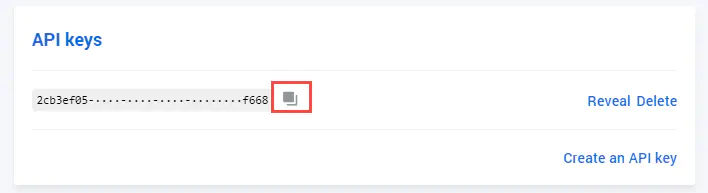 Copy the API key and paste it into the Coinbase settings page in your Payrexx Account (“Payment providers > Coinbase > Edit”)).