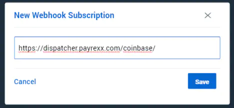 Enter the URL: https://dispatcher.payrexx.com/coinbase/ at “New Webhook Subscription”.