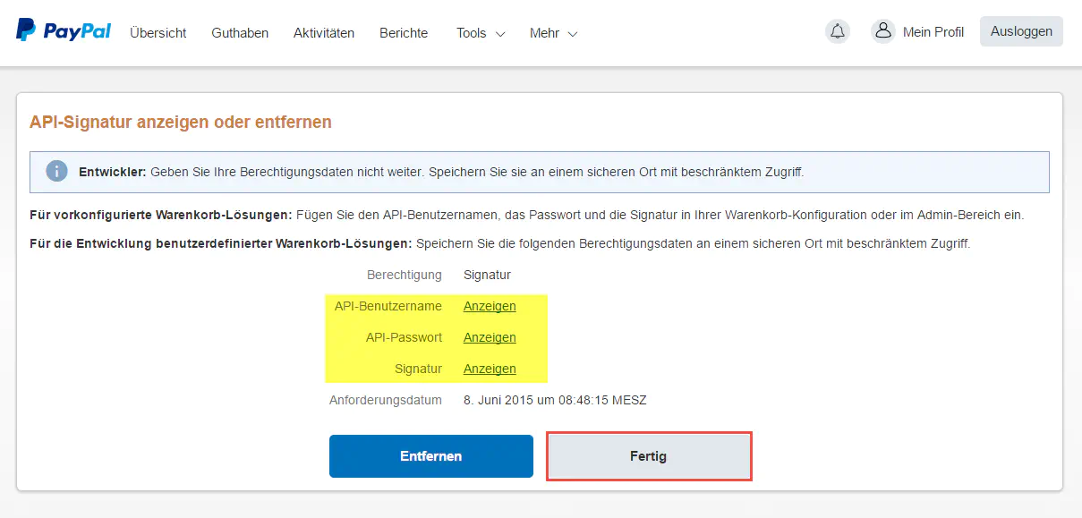 There you can view the API username, API password and signature.