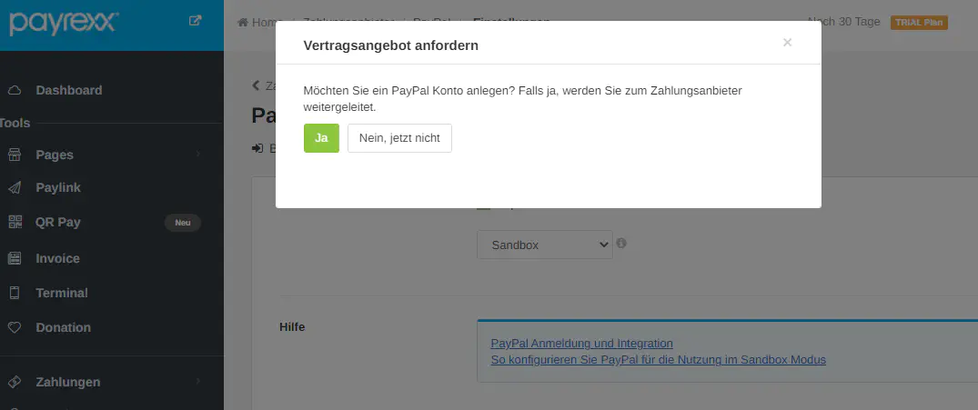 Once you created a free business account on PayPal and requested your access data, you can create a PayPal Sandbox Account to make test payments with one of the Payrexx tools.
