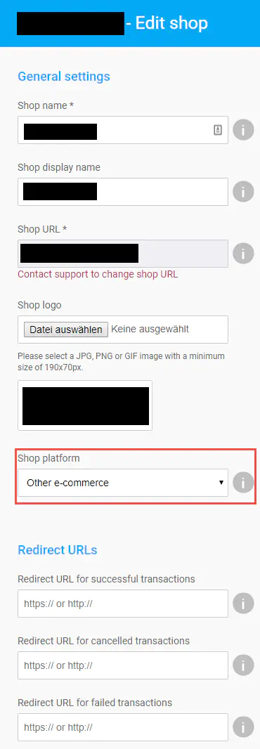 All other settings can be made arbitrarily. The “Redirect URLs” fields should stay empty.