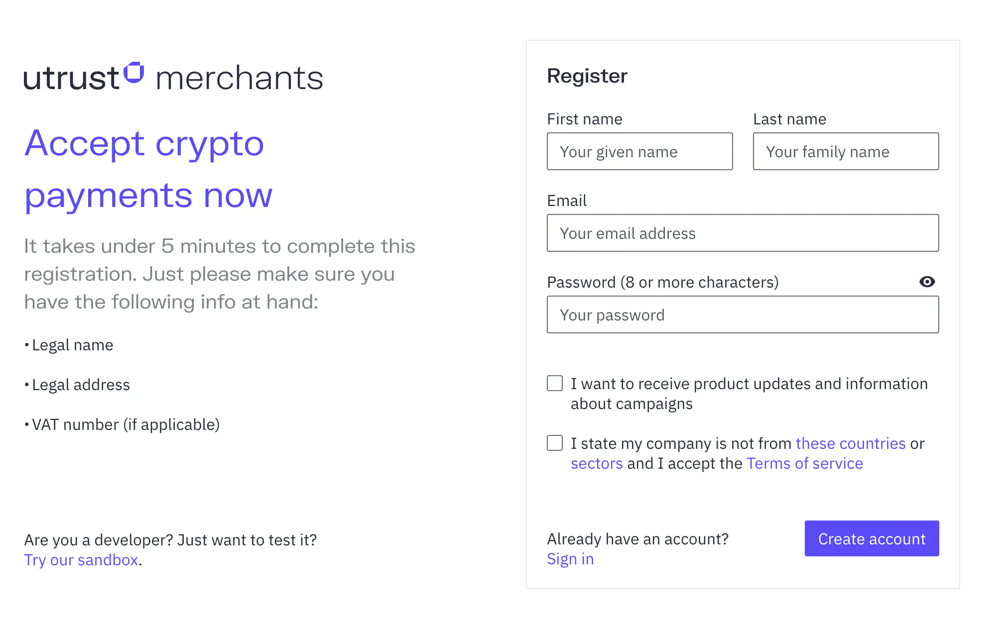 - Utrust merchant account