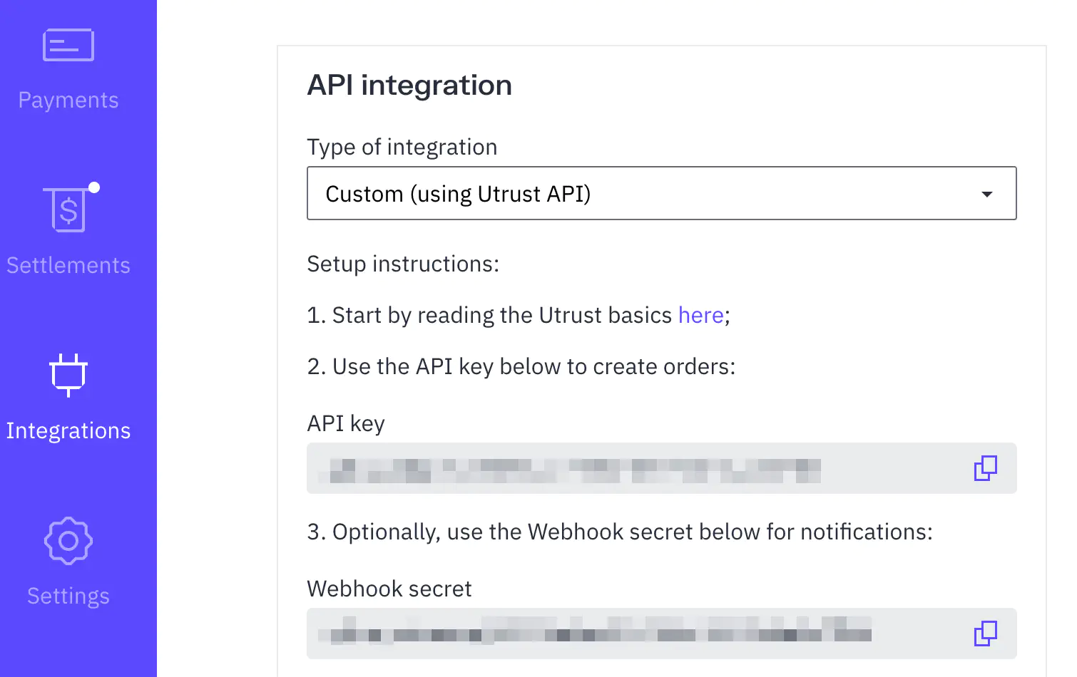 - Productive account settings - Webhook secret: Webhook secret from Utrust