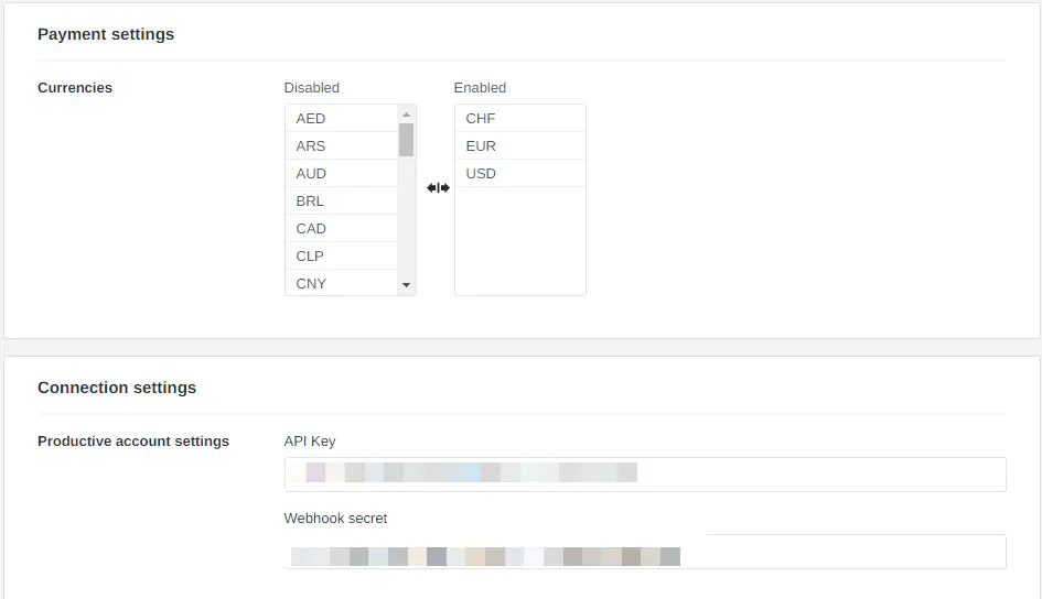 - Productive account settings - API Key: API key from Utrust