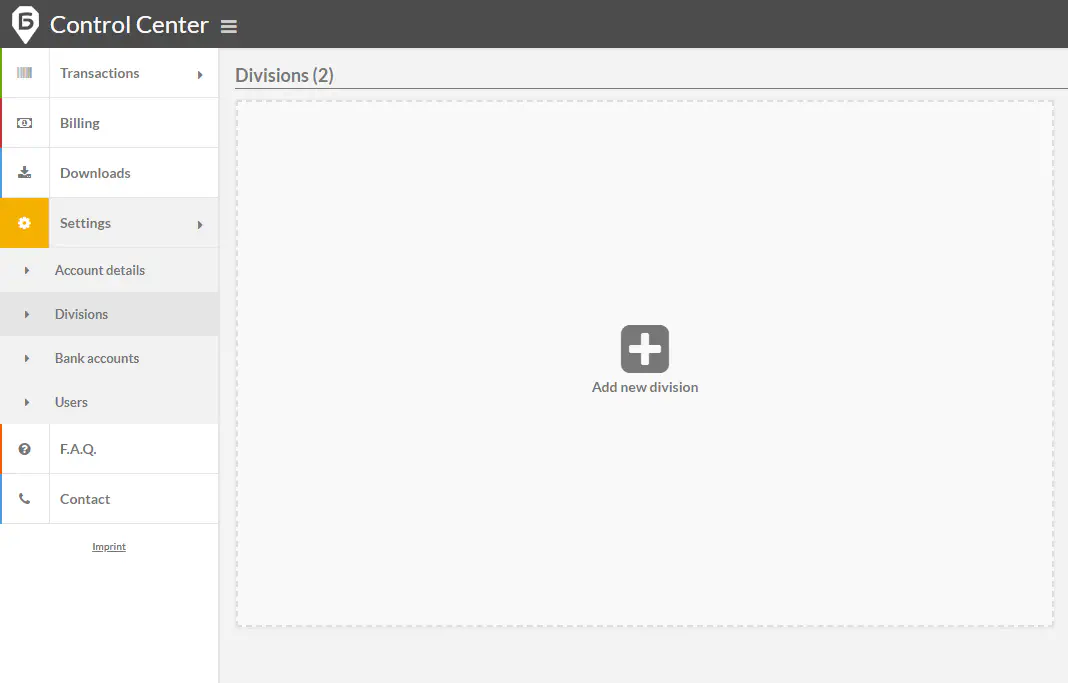 Navigate to “Settings > Divisions” in your viacash account and click on “Add new division”.