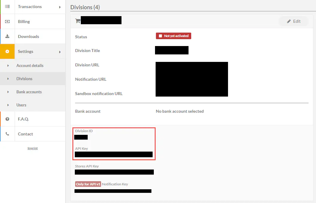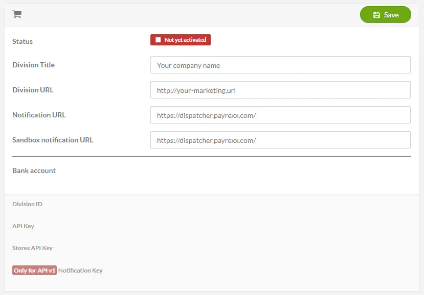 To do this, in your Payrexx account navigate to “Payment provider > viacash > Connection settings”. At “Division ID” insert the Division ID and at “Payment Key” insert the API key.
