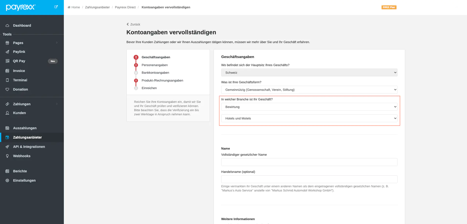 To enable charging of these virtual cards with Payrexx Direct, you will need to select “Hospitality/Hotels and Motels” under “What industry is your business in?” when setting up Payrexx Direct. For Stripe, you will need to contact their support (https://support.stripe.com/email) and ask them to add the MCC code 7011 to your account.