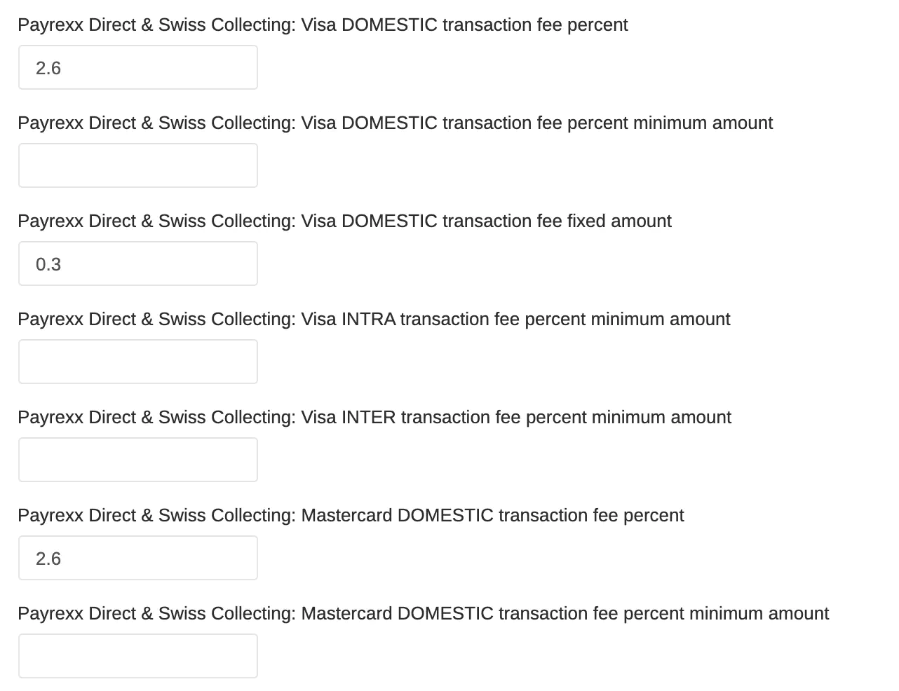 - Your buy rate (set by Payrexx) = 1.7% + 0.20 EUR (per transaction for Visa and Mastercard)